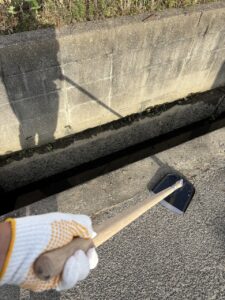 「よし、溝に入って泥をかき出すぞ!」と意気込んでいたのですが、先日の雨の影響で水位が高く、残念ながら今回は断念。それでも、周辺の草を刈ったりゴミを拾ったりと、皆で協力して綺麗にすることができました。
