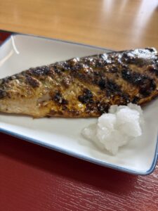 僕のランチの鉄板メニュー、鯖の塩焼きだ。 ただの昼食だと侮ってはいけない。僕にとってこれは、精神を研ぎ澄ますための、神聖な儀式なのだ。