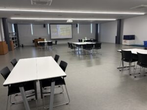 これは、研修が始まる前の、静まり返った研修室です。 「テーブルのレイアウト、どうしようかな?」 そんなことを考えながら、これから始まる時間に思いを馳せていました。