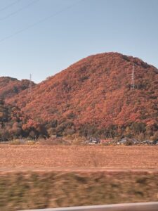 ふと遠くを見れば、山々が燃えるように色づいていました。