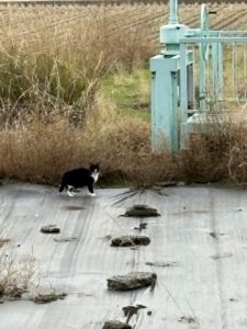 目の前の景色の中で動く物体、野良猫です。 私の住む地域では、自治体の管理が行き届いているせいか、いわゆる「野良」の動物を見かけることは滅多にありません。 久しぶりに見る、たくましく生きる姿。 相手もじっとこちらを見ています。 しかし、この距離感は縮めてはいけない気がしました。 「こっちに来てはだめだよ」 そう心の中で呟き、あえて視線を外します。 人間と野生、互いに干渉しすぎないこの距離こそが、彼らにとっての平穏なのかもしれません。