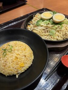何年ぶりかの再会、焼きラーメンです。 スープがない分、これを啜り上げるには相当な「吸引力」を要します。 汁の潤滑油がない中で、麺と唇が擦れ合う独特の摩擦を楽しむ……これぞ焼きラーメンの醍醐味です。