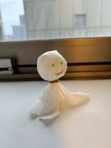 テルテル坊主です。 窓の外、今にも泣き出しそうな灰色の空を見上げていたら、どうしても作りたくなってしまったのです。 記憶をたどれば、製作するのは実に40年以上ぶり。 ホテルの備え付けのティッシュを丸め、輪ゴムでキュッと結び、ペンで顔を描く。 完成した彼(彼女?)と目が合った瞬間、不覚にも思ってしまいました。 「……あれ? 意外と可愛いぞ?」と。