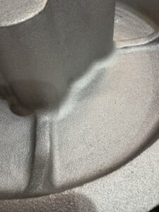 これは、私たちが手掛けたステンレス鋳物の表面、「鋳肌(いはだ)」のアップ写真です。 どうですか?とても滑らかで、均一な「美肌」だと思いませんか?