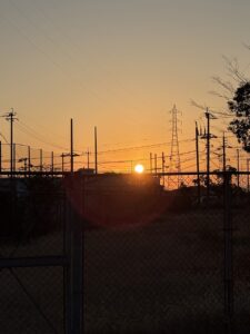 鉄塔の向こうから昇る、力強い朝日です。 あまりの眩しさに、運転しながら思わず目を細めてしまいました。 雪景色を期待していた私の心を溶かし、道路の雪をも消し去った正体。 「そうか、あんなに寒かったのに雪が残っていないのは、君の仕業だったのか?」