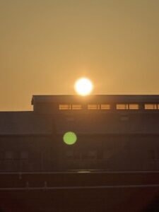朝一番、工場の屋根越しに昇る太陽が、あまりに眩しくてシャッターを切った。