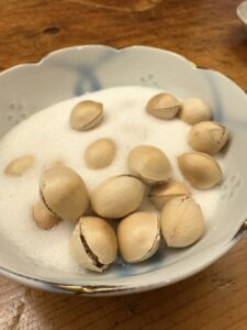 夜はいつものお楽しみ。 カウンターに座り、メニューに「銀杏」の文字を見つけると、もはや義務のように注文してしまう。銀杏と目が合ってしまったら、頼まないわけにはいかないのが呑兵衛の性というもの。