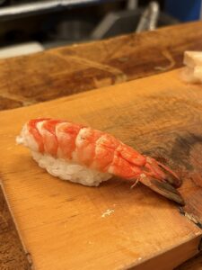 そして、私にとっての「真打」が登場。一番好きなネタ、海老だ。 生ももちろん旨いのだが、寿司ネタとしての完成形は「ボイル」にあると思っている。このしっとりとした甘みと食感。これさえあれば、永遠に食べ続けられるのではないかと本気で思うほど、私の「海老愛」は深い。