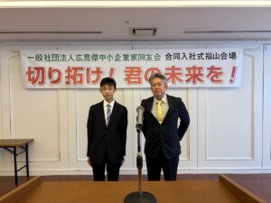 会場の壇上、真新しいスーツに身を包み、少し緊張した面持ちで佇む彼。 彼こそが、我が社にとって**「初の新卒第一号」**となる新入社員だ。