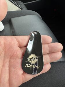 「ハンドビーム」のノベルティ。 今回、この靴ベラを製作依頼したのは、ハンドビームを陰ながら支え、我々「3本の柱」を裏から操る(?)いわば最高秘書官的な人物だ。