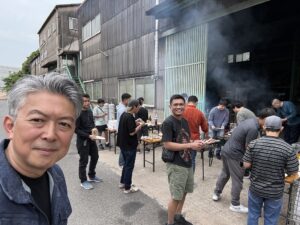 世間はゴールデンウィークの入り口。 今日、福山ステンレスの工場前には、仕事の時とはまた違う、活気ある煙が立ち上っていた。
