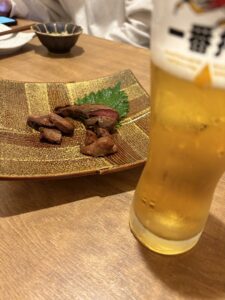 打ち合わせの火蓋を切ったのは、キンキンに冷えた「一番搾り」と、丁寧に焼かれた逸品の数々。