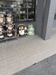 瀬戸の街角で見かけた、カエルとタヌキの置物。 中でも、この緑色のカエル師匠が、私に語りかけてくるような気がした。