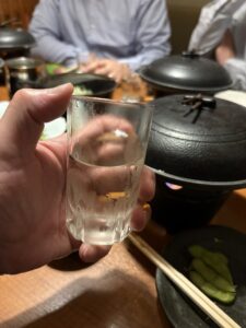 夜は場所を移し、日本酒を酌み交わしながらの熱い語らい。 テーブル上を飛び交うのは、製造側と使用側の、互いの鋳物に対する熱い思いだ。
